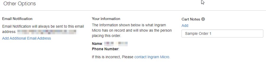 - Add Cart Notes as helpful to you for tracking or processing the order. Please do not include messages to Ingram Micro in this field.