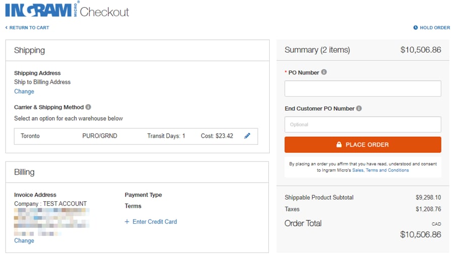 The Ingram Micro website offers several checkout features: