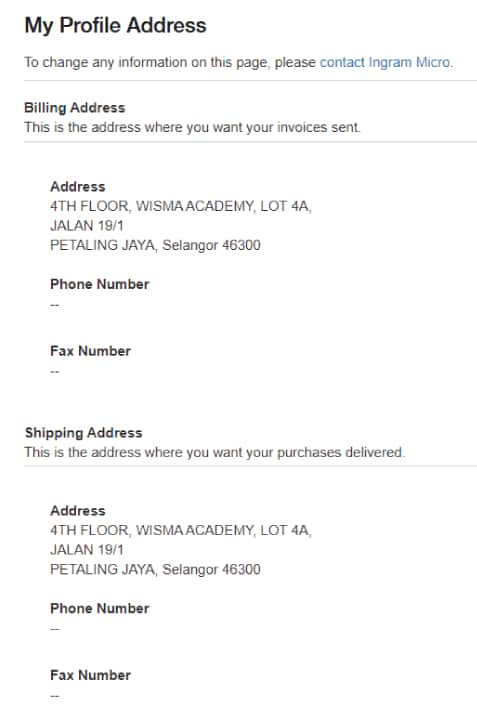 To change or add any information that is not editable on this page, please contact Ingram Micro.